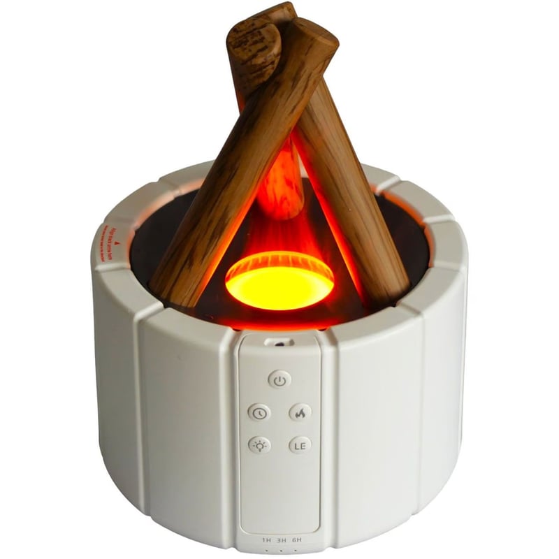 La luz LED de este humidificador simula una fogata, proporcionando una luz suave y acogedora que mejora cualquier espacio.